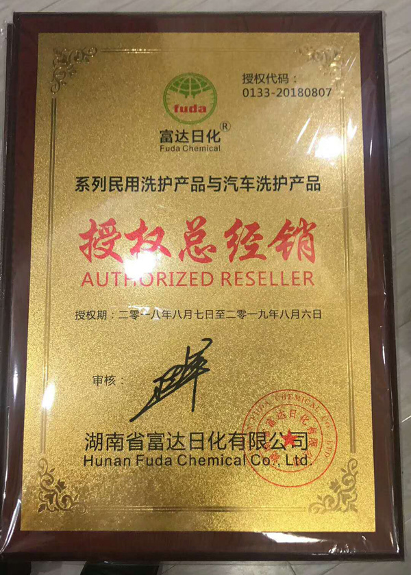 洗滌劑和車用尿素用戶的品質(zhì)保障,湖南富達日化頒發(fā)國家發(fā)明專利金色牌匾,需要定制的老用戶可電話聯(lián)系。