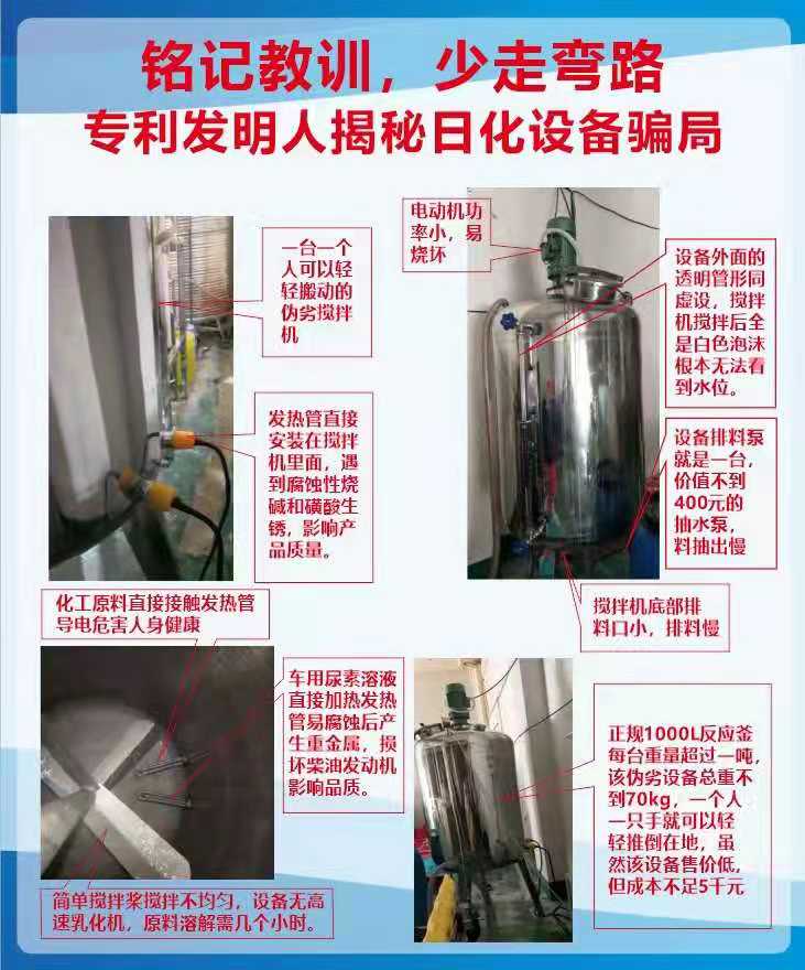 1、設(shè)備內(nèi)部安裝發(fā)熱管直接接觸化工原料引發(fā)人身安全隱患的一定是騙局