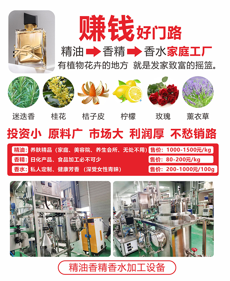 多項專利發(fā)明人王先軍 手機(jī):150-7483-5702 手機(jī):195-7316-0288設(shè)備投資五萬元以上即可生產(chǎn)。精油用于養(yǎng)生,美容院、足浴中心;香精用于食品行業(yè)、日化產(chǎn)品行業(yè);香水用于諸多追求品質(zhì)生活的男女消費者的喜愛。合成精油香精香水的原料來源廣泛,主要是艾草、迷迭香、玫瑰等所有植物根桿或花卉,廠房占地面積20平方米以上,一人就可生產(chǎn),由于用途廣,市場不愁銷路。利潤空間大,投資風(fēng)險小,適合大眾創(chuàng)業(yè)。