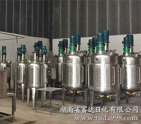 洗潔精生產(chǎn)設(shè)備需要實(shí)現(xiàn)自動(dòng)化生產(chǎn),操作簡(jiǎn)單,容易上手,減少人力成本的投入,1-2人即可操作。投資者可根據(jù)自已區(qū)域市場(chǎng)情況及自身財(cái)力選擇不同型號(hào)。洗潔精生產(chǎn)設(shè)備的結(jié)構(gòu)決定了洗潔精的質(zhì)量。目前市面上的洗潔精設(shè)備都是靠機(jī)械外力單純攪拌成型的設(shè)備。單純攪拌成型的缺點(diǎn)就是產(chǎn)品只是暫時(shí)分散,原材料達(dá)不到充分的分散和乳化,產(chǎn)品很容易產(chǎn)生分層、沉淀,變質(zhì)變臭的現(xiàn)象。目前正規(guī)廠家全部采用的是機(jī)械乳化工藝,電機(jī)帶動(dòng)不銹鋼剪切乳化頭,可以把原料進(jìn)行充分乳化和溶解,做出的產(chǎn)品保質(zhì)期長(zhǎng),顏色均勻、統(tǒng)一,不會(huì)分層、沉淀,完全達(dá)到國(guó)家要求的保質(zhì)期限。富達(dá)日化洗液洗滌劑設(shè)備與傳統(tǒng)攪拌設(shè)備不同;設(shè)備上部有高速等離子剪切乳化和攪拌同步,設(shè)備下部有螺桿泵或離心乳化泵循環(huán)乳化和自動(dòng)排料;比傳統(tǒng)攪拌機(jī)節(jié)省時(shí)間3倍以上,產(chǎn)品保質(zhì)期延長(zhǎng)2倍以上,由于乳化好、產(chǎn)品濃度大、去污力更強(qiáng),同等成本下比傳統(tǒng)攪拌機(jī)生產(chǎn)的產(chǎn)品提高去污指數(shù)30%-40%。立白集團(tuán)、藍(lán)思科技等正規(guī)大廠也從本廠采購(gòu)此類設(shè)備。